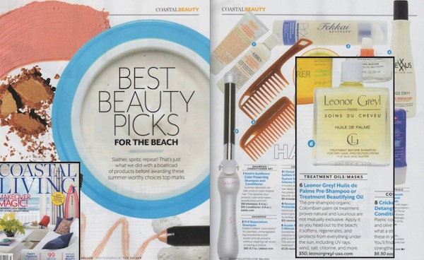 Thankfully Leonor Greyl has a solution. Add a few drops of our Huile de Palme oil to your hair before stepping out on the beach. It will act as a shield from harmful UV rays and salt water. Plus, it smells amazing! We’re not the only ones who love it. Coastal Living magazine just named it one of it’s best beauty picks for the beach!